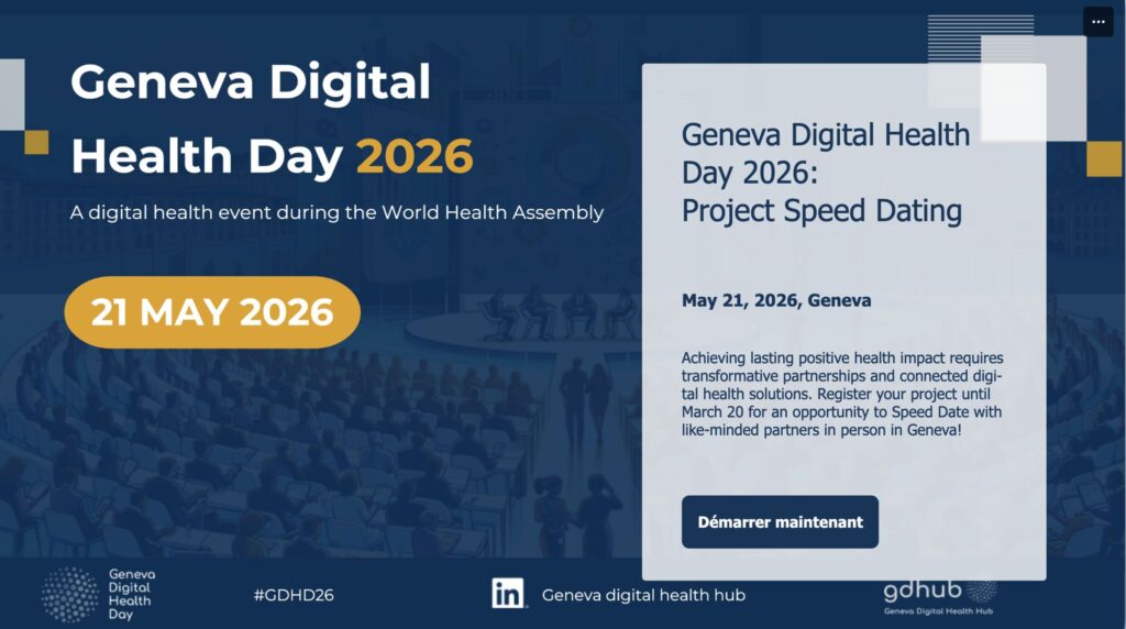 Geneva Digital Health Day, organized on the sidelines of the eighty-eighth World Health Assembly, will bring together healthcare professionals, innovators, policy makers, academics and actors from the private sector to share insights and experiences in the field of digital health. The Digital Health Day is organized by the Geneva Digital Health Hub (gdhub) in partnership with the Geneva Health Forum and the Word Health Organization. In this event, we are organizing Project Speed Dating.